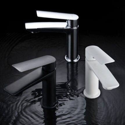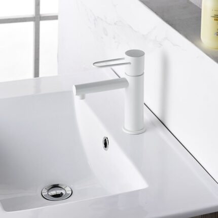 Grifo de lavabo serie FIYI en acabado blanco mate, cuerpo de grifería de latón blanco mate, cartucho cerámico de 25mm,