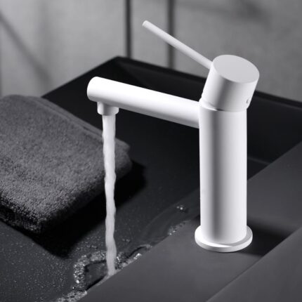 Grifo de lavabo serie MILOS en acabado blanco mate, cuerpo de grifería de latón blanco mate, cartucho cerámico de 25mm,