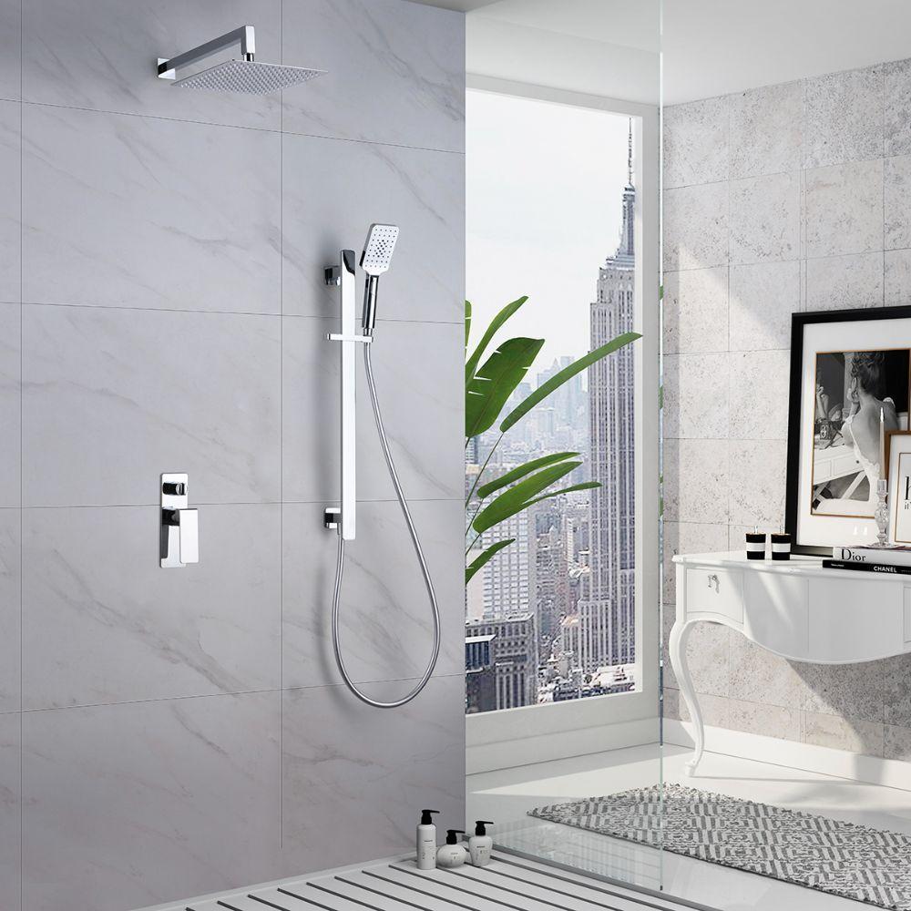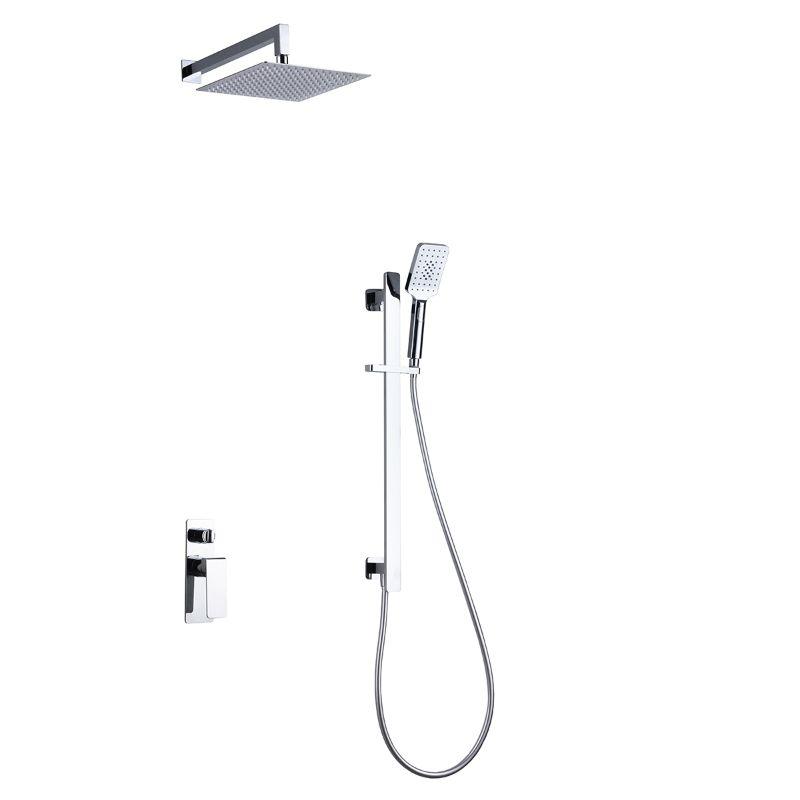 Empotrado de ducha serie BORNEO, cuerpo de griferia 2 vías, rociador 25X25, cartucho monomando 35mm, barra con toma de agua, flexo PVC y mango y brazo a pared todo en acabado cromado. No incluye box de registro
