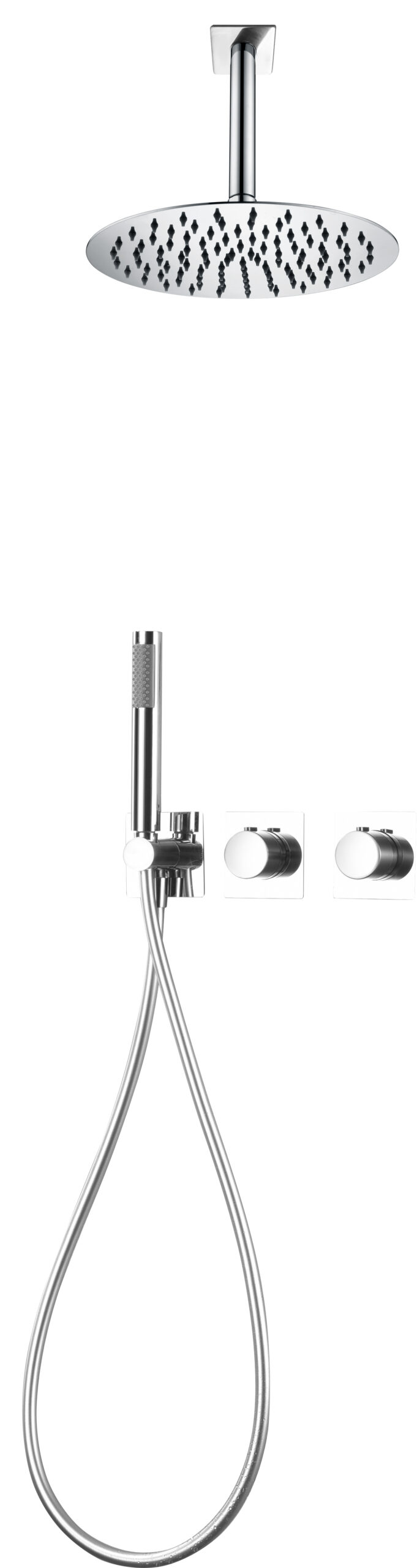 Rociador de acero inox. redondo Ø25 cm, extraplano y antical.