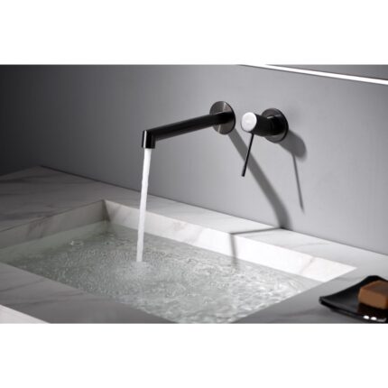 Grifo de lavabo empotrado mod. MILOS, monomando, cuerpo de grifería en dos partes independientes, exterior en latón acabado negro mate.