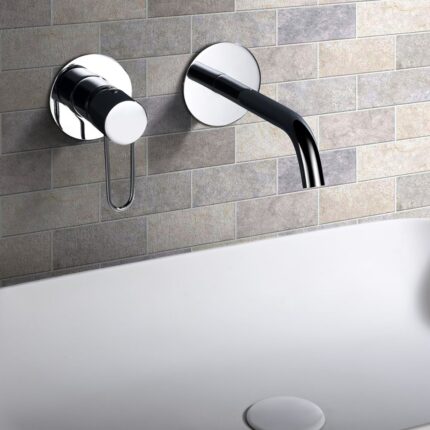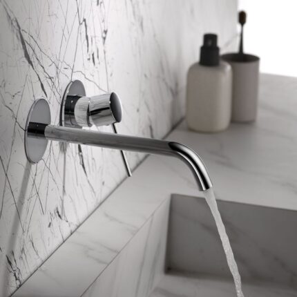 Grifo de lavabo empotrado mod. MILOS, monomando, cuerpo de grifería en dos partes independientes, exterior en latón cromado.