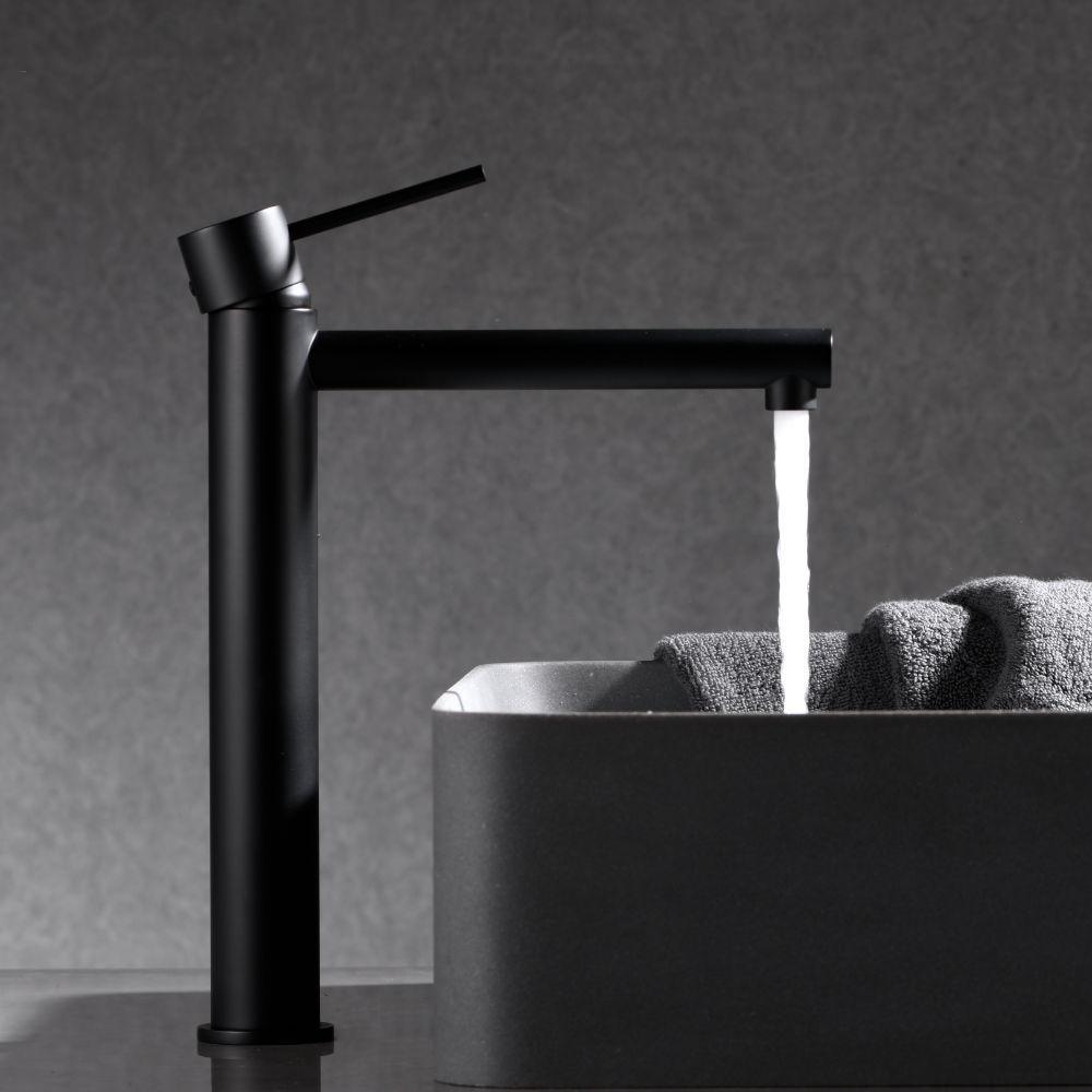 Grifo de lavabo alto serie MILOS STICK en acabado negro mate, cuerpo de grifería de latón negro mate, cartucho cerámico de 25mm, incluye latiguillos 38″