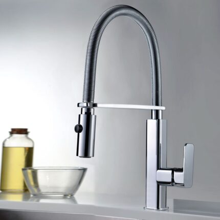 Grifería de cocina monomando mod. TOULOUSE, cuerpo grifería en latón cromado y caño flexible, cartucho monomando de 35mm., incluiye latiguillos